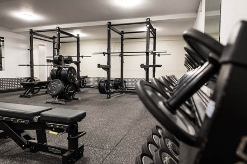 The gym has a floor area in excess of 4,000 square feet and is divided into a cardiovascular section, a fixed resistance machinery area and a free weights and stretch area.